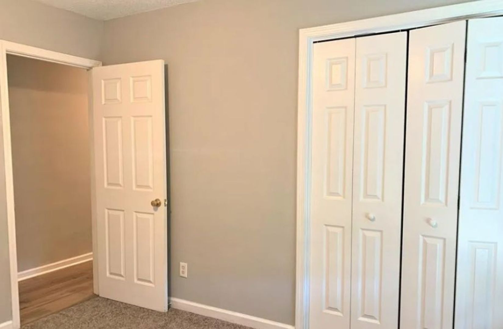 Spacious open living area with updated flooring
